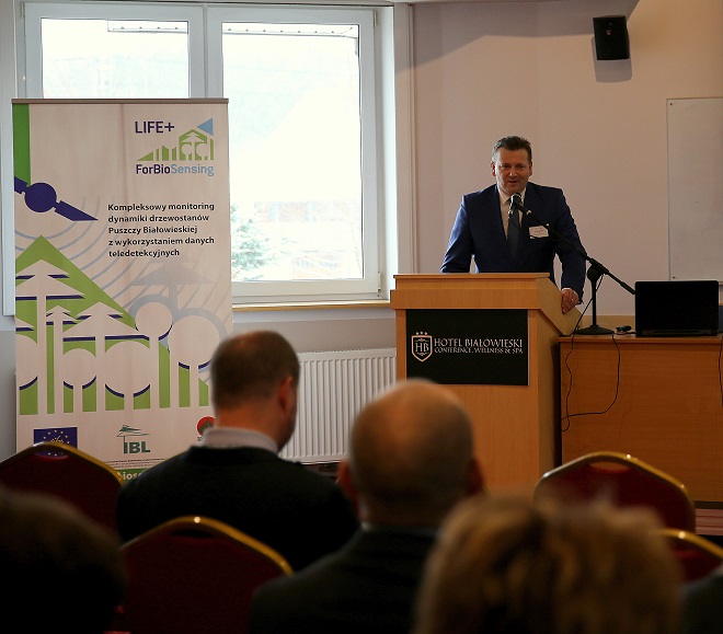 Konferencję otworzył Dyrektor Instytutu Badawczego Leśnictwa (IBL), dr hab. Janusz Czerepko, który przywitał zaproszonych gości oraz podkreślił znaczenie Projektu ForBioSensing w kontekście monitorowania oraz zarządzania Puszczą Białowieską.